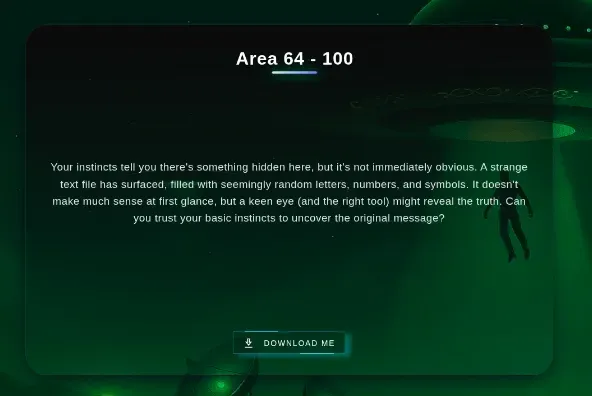 1. The provided file contained a base64 encoded text (from the name area 64)