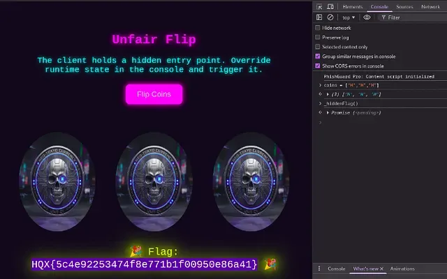 3. Unfair Flip - HQX{5c4e92253474f8e771b1f00950e86a41}